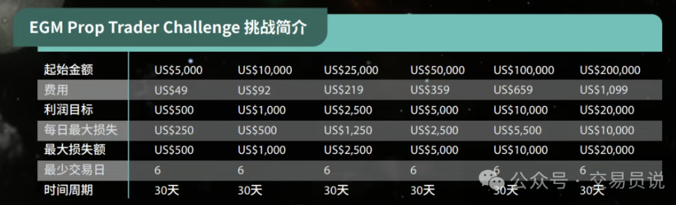 需要注意的是,我们进行挑战时使用的模拟账户金额,就是通过考核后能够获得的操盘金额,举个例子:我们现在购买了一个1万美元的模拟账户,通过考核后就获得1万美元的操盘资金。相应的,如果我们想要获得10万美元资金,就需要购买一个10万美元的模拟账户,但这个模拟账户的购买费用也会高出很多,可能是1000美元。